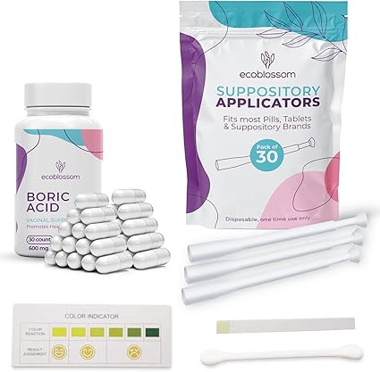 Amazon Com Ecoblossom Boric Acid Suppositories For Women 600mg 30 Count Applicators 30 Feminine Ph Test Strips 30 Bv Yeast Infection Treatment For Ph Balance Vaginal Health Complete Set Health Household